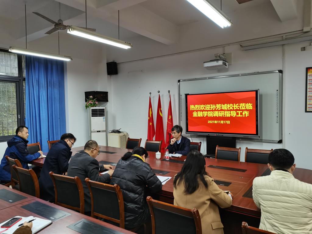 11月17日上午,校长孙芳城到金融学院调研指导工作。金融学院党委书记、副院长王建明,党委副书记、院长王兰,党委副书记、纪委书记余新,党委委员、副院长庞楷、王韧,党委委员、专职组织员赵甫刚以及全体科级干部参加了会议。会议由王建明主持。金融学院班子成员分别从党建、学科科研、专业建设、教学管理、人才队伍建设、党风廉政和落实巡视整改措施等方面取得的进展和存在的问题进行了详细汇报。孙芳城认真听取了汇报,对学...