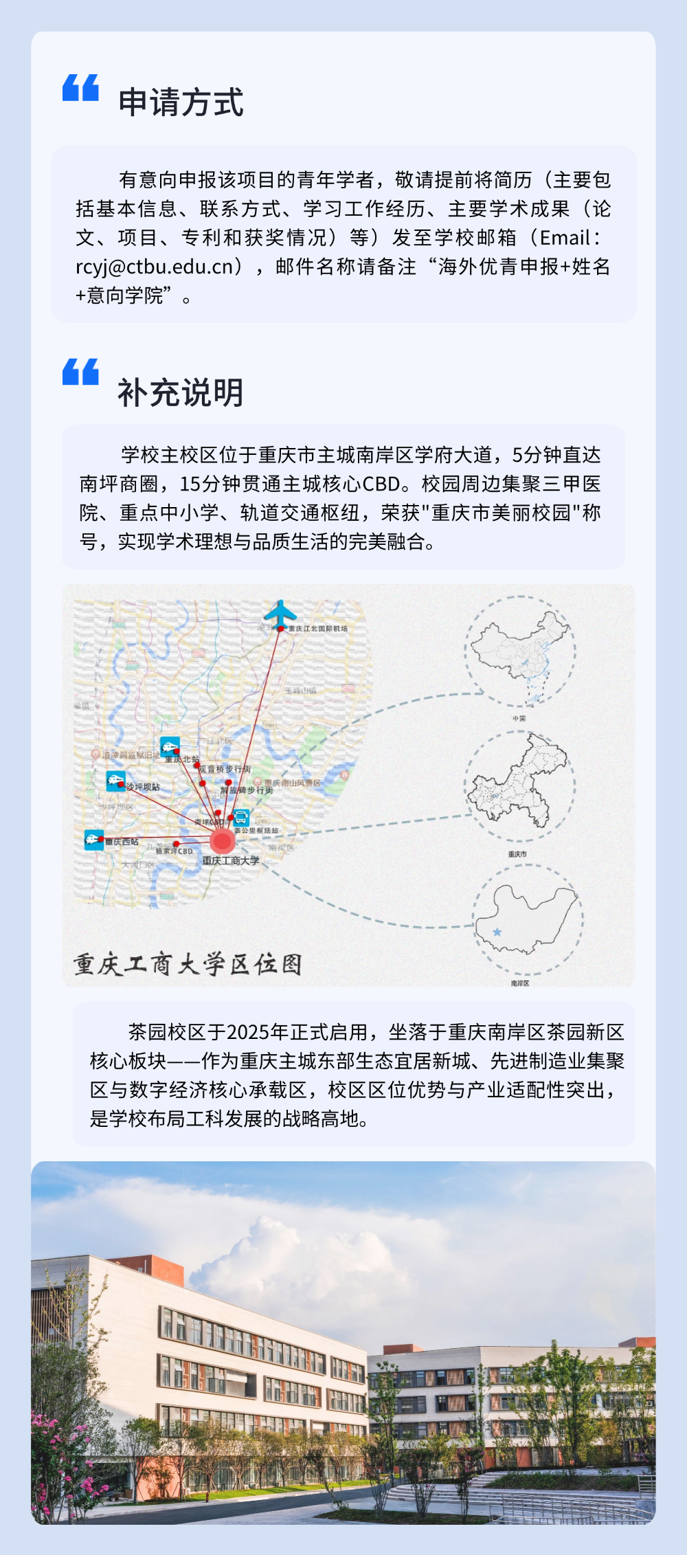 茶园校区:重庆市南岸区梨花大道853号/邮政编码:400072