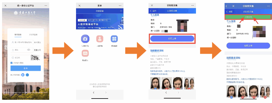 采集工作为师生分散“线上”自行采集,确保人脸照片采集工作有序进行。采集时段为全天不限时,建议师生结合自己时间错峰采集。