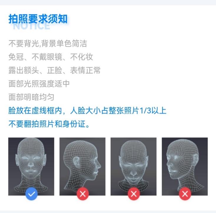 3. 采集时请严格按照提示进行,拍照要求须知(见下图)