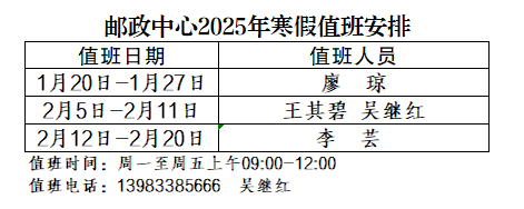 党政办公室关于2025年寒假学校印章服务等工作的通知