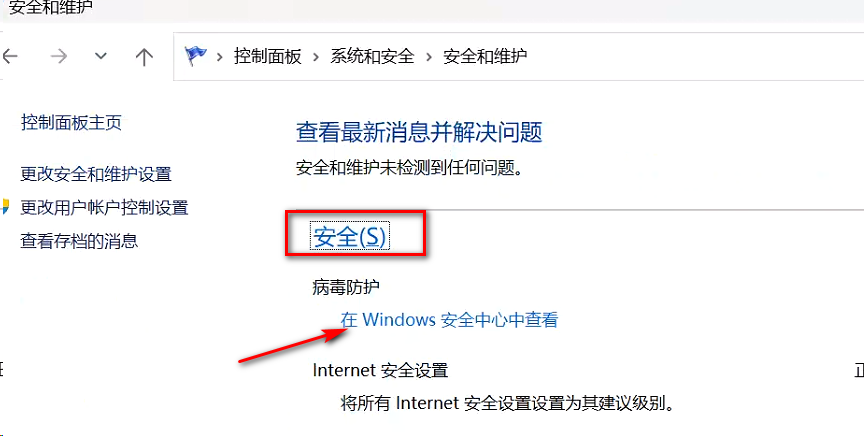 2)点击“安全和维护”