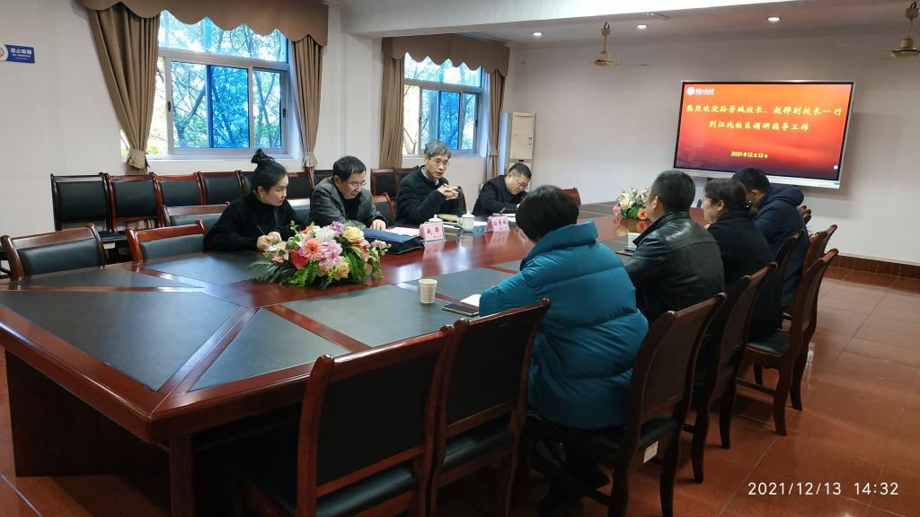 12月13日下午,校长孙芳城、副校长赵骅一行到江北校区调研检查指导工作。资产管理处处长刘强、党政办副主任郭敏和通识学院(江北校区管委会)班子成员陪同检查并参加调研座谈会。
