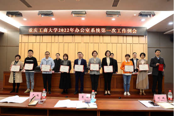 会上,宣读了《关于表彰beat365英国官网网站2021年度办公室系统先进个人的决定》,并为获评的10名先进个人颁发了证书。罗勇对各二级单位“十四五”规划、2022年度工作计划提了工作要求;党政办公室副主任蒋年韬、刘乃睿、郭敏,分别对市委巡视整改成效综合评估、办公会议题申报规范性、疫情防控、教授工作室管理、校庆工作推进等做了工作布置。