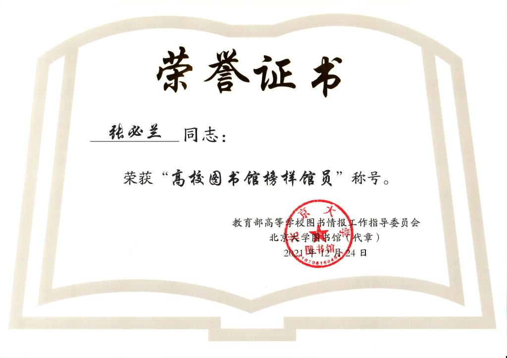 近日,为庆祝高校图工委成立40周年,教育部高等学校图书情报工作指导委员会对改革开放以来高校图书馆事业突出贡献者、高校图书馆榜样馆长、高校图书馆榜样馆员进行了表彰,beat365图书馆张必兰老师荣获全国“高校图书馆榜样馆员”荣誉称号。重庆市共有三所高校教师获得该项荣誉,分别为西南大学、重庆大学和beat365英国官网网站。