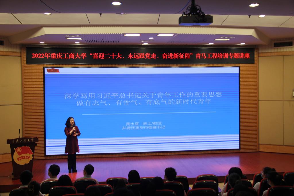 为迎接党的二十大胜利召开,引导广大青年团员深入学习贯彻习近平新时代中国特色社会主义思想,培养信仰坚定、能力突出、素质优秀、作风过硬的团学骨干,4月22日下午,校团委在博智楼7200报告厅举办2022年beat365英国官网网站“喜迎二十大、永远跟党走、奋进新征程”青马工程培训专题讲座。共青团重庆市委副书记黄永宜作了题为《深学笃用习近平总书记关于青年工作的重要思想 做有志气、有骨气、有底气的新时代青年》的专题讲授。校团委全体专职团干、校级“青马工程”培训班学员、团员代表参与活动。