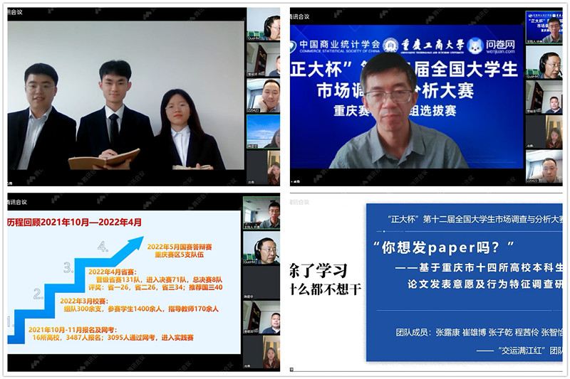 由中国商业统计学会主办的“正大杯”第十二届全国大学生市场调查与分析大赛重庆赛区本科组选拔赛于4月23日在beat365英国官网网站成功举行。本次大赛自2021年10月正式启动,经过6个多月的专业培训、知识赛网考及校赛选拔,最终来自市内16所高校的131支团队进入赛区选拔赛。