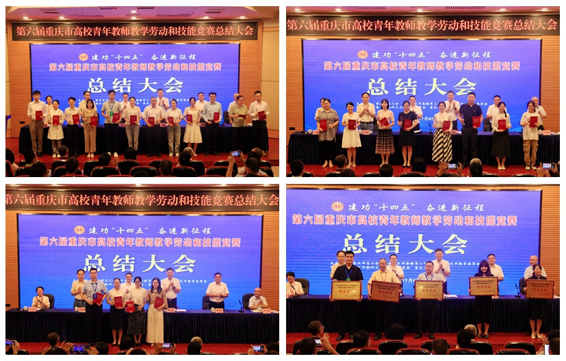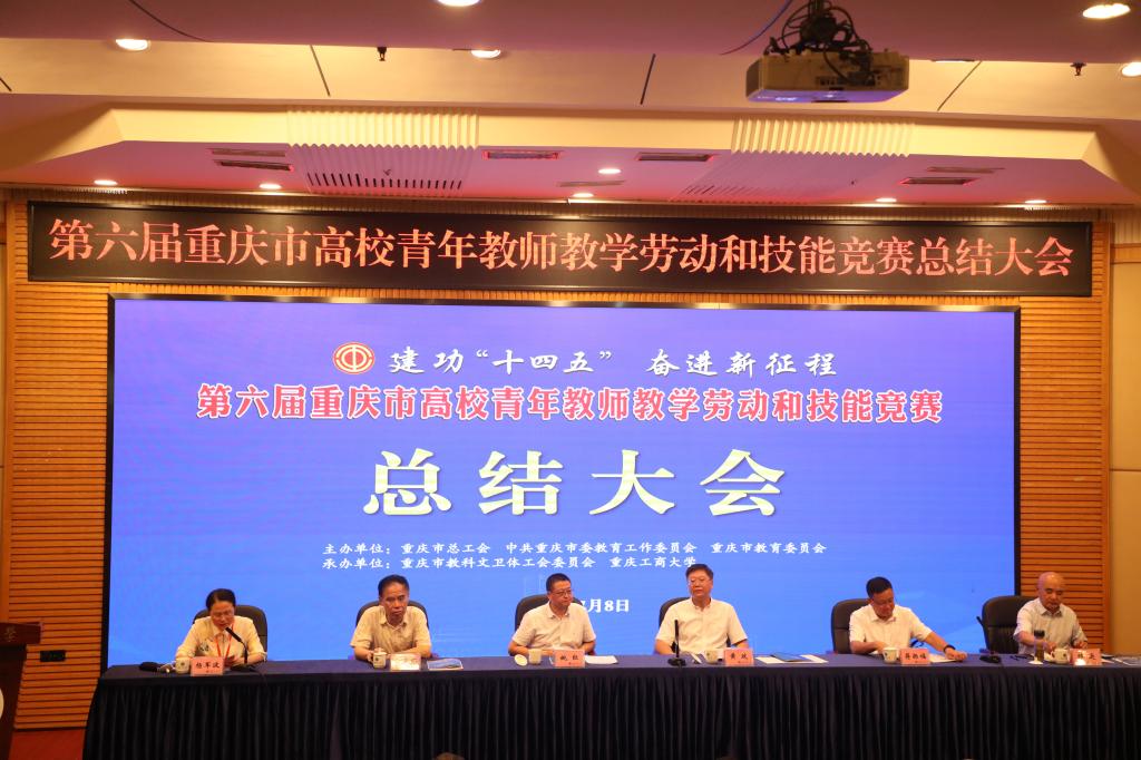 7月8日下午,第六届重庆市高校青年教师教学劳动与技能竞赛总结大会在beat365博智楼7200报告厅举行。重庆市总工会党组书记、副主席姚红,重庆市委教育工委书记、市教委主任黄政,beat365党委书记李志雄,重庆市总工会党组成员、副主席蒋扬福,重庆市委教育工委委员、市教委二级巡视员帅逊等领导出席会议,重庆市教委、市总工会相关处室负责人,竞赛评委专家,各参赛队领队和获奖选手代表等参与会议。会议由重庆市总工会一级巡视员、市教科文卫体工会主席杨军波主持。