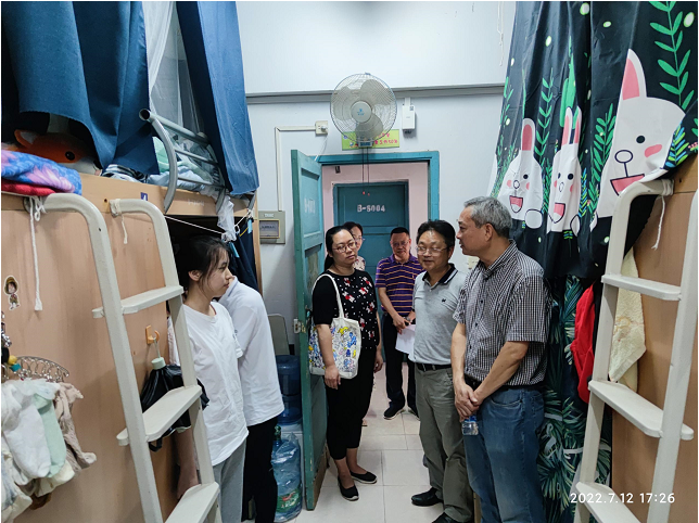 暑期来临之际,7月12日下午,学校党委常委、副校长李国军一行深入南岸校区南区、北区学生公寓,看望关心暑期留宿学生,检查指导留宿学生服务保障工作。学生处处长申卫东,副处长陈龙国、张朝毅和相关学院负责人陪同慰问检查。