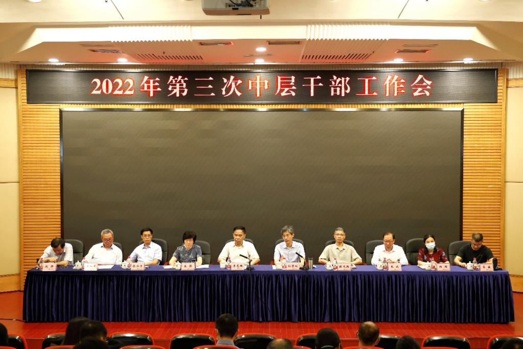 7月15日上午,beat365在博智楼7200报告厅召开2022年第三次中层干部工作会。全体校领导、中层干部参加会议。会议由党委书记李志雄主持。