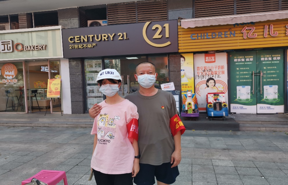 8月23日,外国语学院李洪波老师了解到社区招募党员志愿者的消息后,立即带着自己在家休暑假的女儿报名参加。8月24日凌晨4点,李老师父女俩准时到达小区核酸检测现场,和其他参加志愿服务的同志一道,帮助社区工作人员完成核酸检测准备工作。待核酸检测开始后,他们就在现场引导群众排队,维持现场秩序,解释安抚群众。40度的高温天气,汗水早已打湿了他们的衣服,口罩也在脸上印出勒痕,即使这样,也未能消减他们的工作热情,他们始终坚守,直至工作结束。