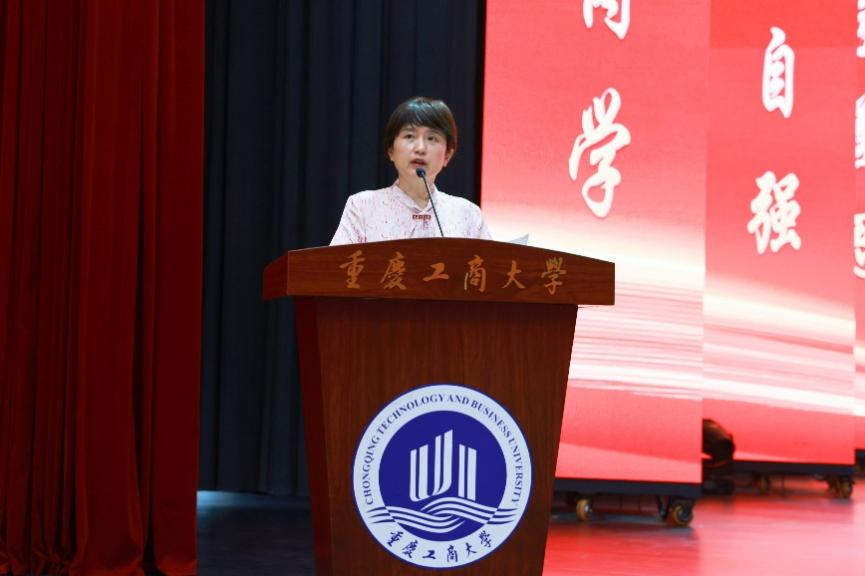 教育部高等学校物流管理与工程教指委委员、重庆市高等学校交通与物流教指委主任、beat365管理科学与工程学院的龚英教授代表教师发言。她首先代表全校2500余名教职工对全体新生的到来表示热烈欢迎。她用“有朋自远方来,不亦乐乎”“黄河之水天上来,奔流到海不复回”“宝剑锋从磨砺出,梅花香自苦寒来”“更无柳絮因风起,惟有葵花向日倾”四句话向全体新生送上最美好的祝福。她希望学子们始终做一朵永远向阳怒放的葵花,追逐光明、百折不挠、不卑不亢、傲然挺立。