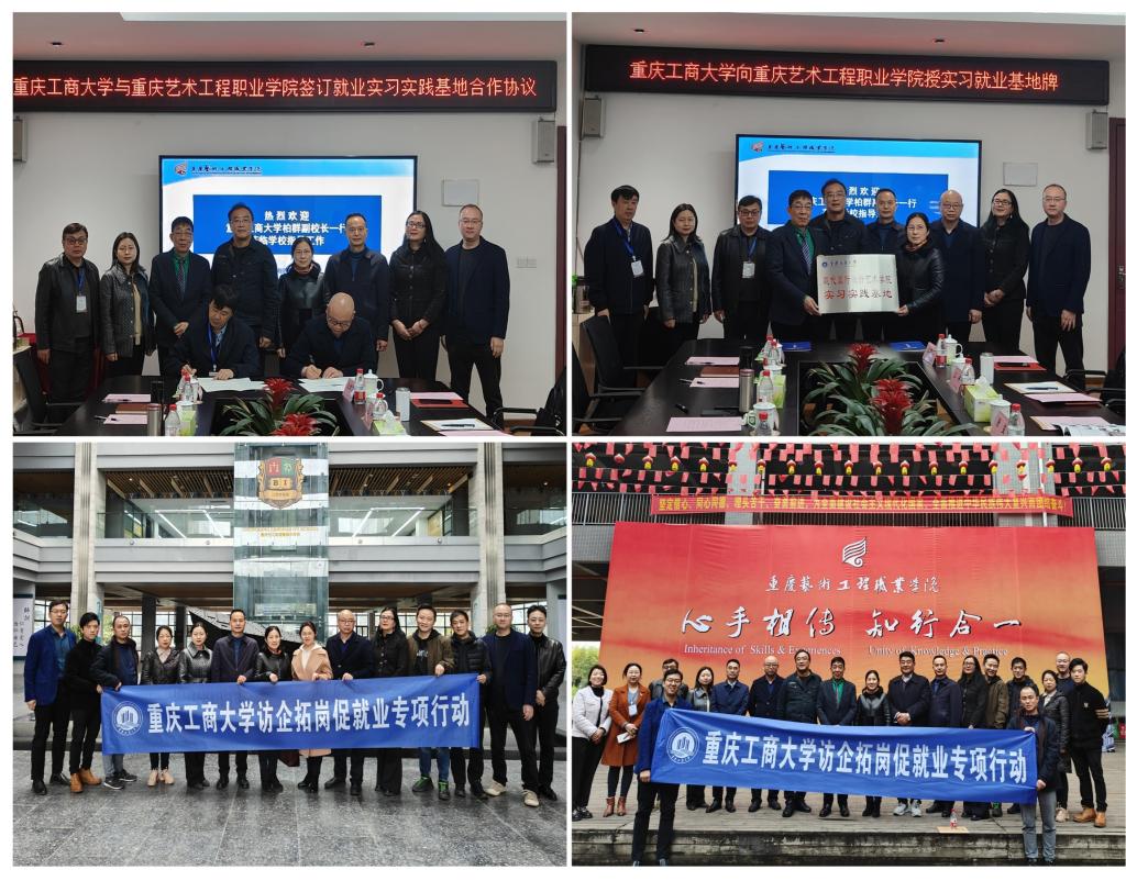 柏群向对方介绍了beat365英国官网网站的基本情况以及在学科建设、中外合作办学、人才培养等方面的特色与亮点。陈绪春介绍了beat365英国官网网站艺术学院、现代国际设计艺术学院的办学发展、研究生教育及2023届毕业生情况,期望双方深化合作,为学生实习就业搭建平台、拓展空间。许锡宾介绍了重庆艺术工程职业学院发展沿革、专业设置、办学特色、目标愿景等相关情况。座谈双方围绕实习实践基地共建、国际合作交流、产学研融合发展、师生交流互访、就业岗位拓展等方面进行了深入讨论,就部分内容达成初步共识并签署实习就业合作协议。柏群向重庆艺术工程职业学院授牌,双方共建实习实践基地。