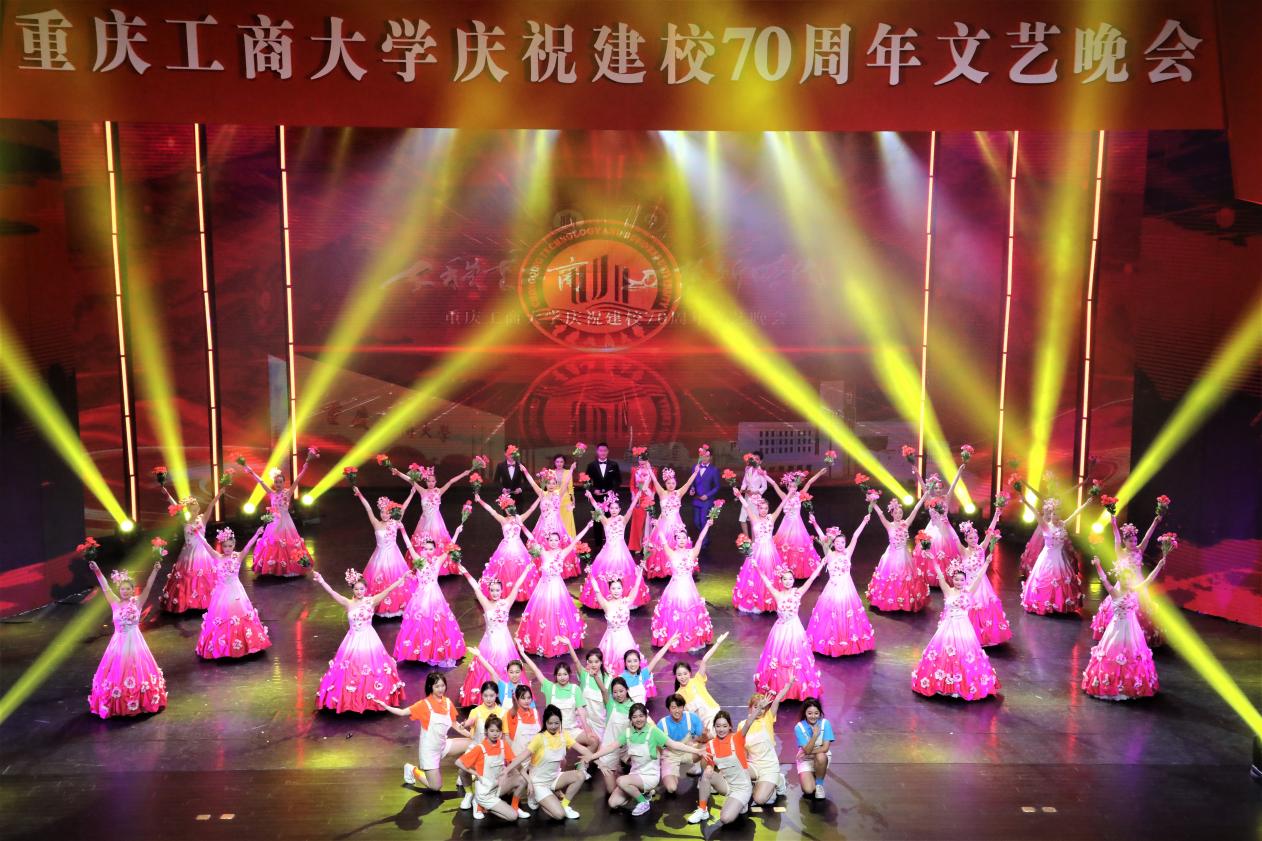 庆祝活动仪式结束后,文艺晚会正式开始。灯光璀璨、绚丽多彩的图书馆千人剧场内,校友、师生们以最饱满的热情和最佳的精神状态,为台下观众呈现了一场场精彩绝伦的视听盛宴。庆祝晚会立足于学校建校70周年重要节点,紧扣 “七秩重工商,逐梦新时代”主题,分为“上篇 溯•踔厉求索”和“下篇逐•梦想启航”两个篇章。晚会通过歌舞、表演、群话、朗诵等形式,用催人奋进的旋律、感人至深的画面,重现了重工商大70年来的风雨历程,全面立体展示出70年来拼搏进取的校风校貌,诠释了“含弘自强,经邦济民”的重工商大精神,激励着新时代重工商人踔厉奋发启新程、七秩风华再起航。