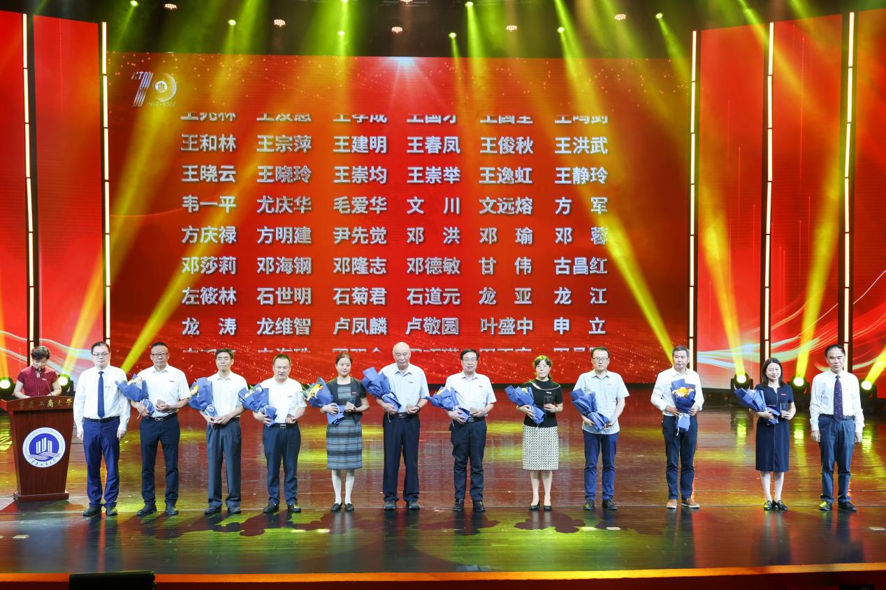 随后,校长温涛宣读了《关于发布beat365英国官网网站建校70周年“荣誉·致敬”榜单的决定》。温涛指出,为更好展现学校70年办学成就,激励全校师生、校友进一步弘扬“含弘自强,经邦济民”的重工商大精神,汇聚改革发展磅礴力量,赓续立德树人初心使命,在庆祝建校70周年庆典之际,学校决定发布“beat365英国官网网站建校70周年‘荣誉•致敬’榜单”。入选beat365英国官网网站建校70周年“荣誉·致敬”榜单的教师、离退休教职工和校友,是学校70年办学历程中涌现出的先进典型。温涛希望全校师生以他们为榜样,继续保持一往无前、乘势而上的奋斗姿态,锚定学校第四次党代会确定的目标任务,凝心聚力,自信自强,守正创新,勇毅前行,为全面建设现代化高水平大学而团结奋斗,为在新时代新征程全面建设现代化新重庆而团结奋斗,为以中国式现代化全面推进中华民族伟大复兴而团结奋斗。