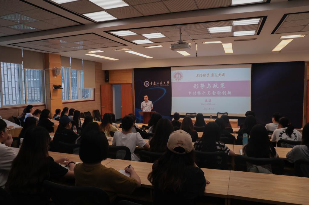 课程伊始,温涛以乡村振兴和农村金融创新为切入点,围绕“新时代历史性成就和历史性变革”“中央的重大战略部署”“农村金融仍待突破的薄弱环节”“对标对表全面乡村振兴,加快金融服务创新”等四个方面,为同学们系统深入地讲解了乡村振兴与农村金融相关知识。