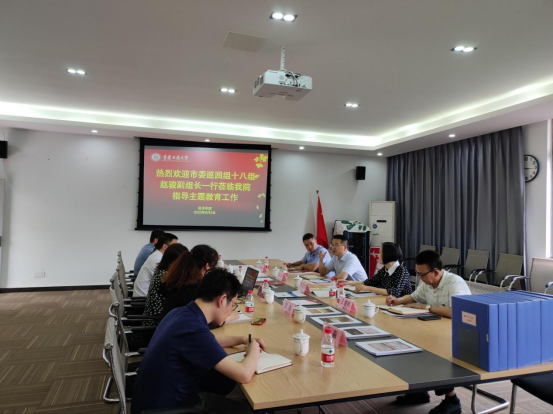 6月8日下午,市委巡回指导十八组赵骏副组长一行到beat365经济学院调研指导主题教育工作,通过实地考察、座谈交流、查阅资料等方式,全面了解经济学院主题教育开展情况,对推进主题教育作全面指导。学校党委常委、组织部部长郑夕春,机关党委书记兼组织部副部长王建明,经济学院党委班子成员、各支部书记及师生代表参加调研。