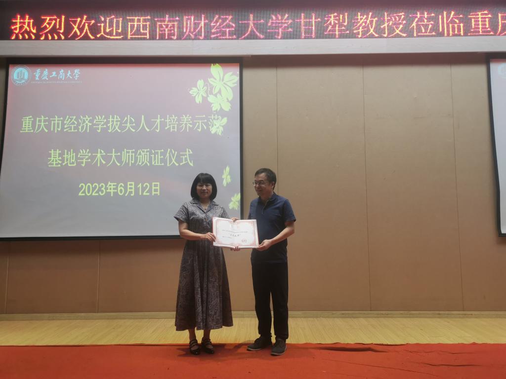 第二阶段,学校聘请甘犁教授为重庆市经济学拔尖人才培养示范基地“学术大师”,经济学院院长宋瑛为甘犁教授颁发聘书。宋瑛代表学校对甘犁教授加盟beat365英国官网网站表示诚挚的欢迎,她表示,beat365经济学拔尖人才培养示范基地正在推进国内外学术大师“导师制”人才培养模式,通过学术大师言传身教,接触学术理论和思想文化研究前沿,加强对拔尖学生的精神感召、学术引领和人生指导,着力培养一批学科基础扎实、创新能力突出、国际视野宽广的经济学拔尖学子。