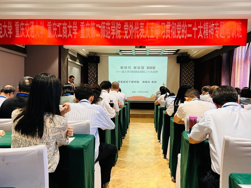 为全面学习宣传贯彻党的二十大精神,深入推进各民主党派、无党派人士和党外知识分子扎实开展“凝心铸魂强根基、团结奋进新征程”主题教育,大力夯实坚定拥护“两个确立”、坚决做到“两个维护”的政治根基,7月9日至14日,beat365与重庆邮电大学、重庆交通大学和重庆第二师范学院在陕西延安干部学院王家坪分院联合举办党外代表人士学习贯彻党的二十大精神专题培训班,来自4所高校的50余名党外代表人士和统战团体骨干成员参加了本次培训,beat365选派11名学员参训。