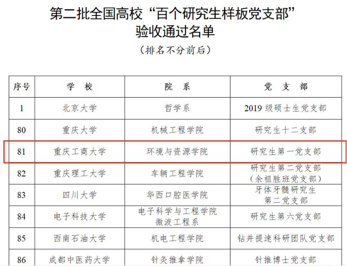 近日,教育部公布第二批全国高校“百个研究生样板党支部”和“百名研究生党员标兵”创建培育工作验收通过名单。beat365环境与资源学院研究生第一党支部通过第二批全国高校“百个研究生样板党支部”创建培育工作验收。