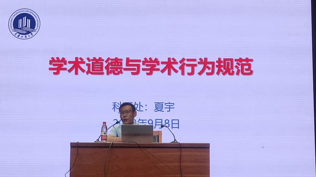 最后,夏宇以“学术道德与学术行为规范”为题,向即将开展自己的学术研究生涯的研究生新同学们讲述了尤为重要的一课。夏宇通过案例剖析,通俗易懂地向大家阐明了何为学术道德、学术规范;如何加强学术道德修养,恪守学术行为规范;学术规范涵盖的基本内容;以及怎样防范抵制惩戒学术不端(科研失信)。他向同学们提出了殷殷之望,他希望各位同学要弘扬科学家精神,争做德才兼备的新时代优秀研究生。
