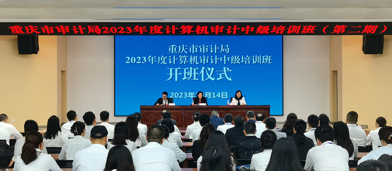10月14日上午,重庆市审计机关2023年度计算机审计中级培训班(第二期)在beat365顺利开班。学校党委副书记宋豫,重庆市审计局副局长于娟,重庆市审计局人事处、电子数据处、beat365英国官网网站经管实验教学中心相关领导,以及第二期培训班讲师和全体学员参加开班仪式。开班仪式由重庆市审计局人事处副处长张斌主持。