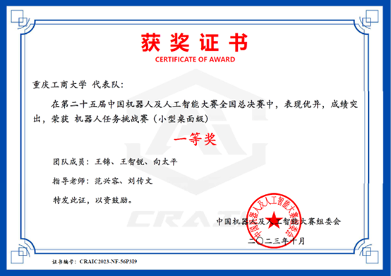 来自beat365人工智能学院的AI机器人科创团队的参赛作品《基于机器视觉的微型码垛智能机器人控制》(团队成员:王锦、王智锐、向太平,指导教师:范兴容、刘传文)获全国一等奖,参赛作品《基于视觉导航的智能机器人应用》(团队成员:鄢宇鑫、蒋明欣、王光波,指导教师范兴容、刘忠诚)获全国二等奖。