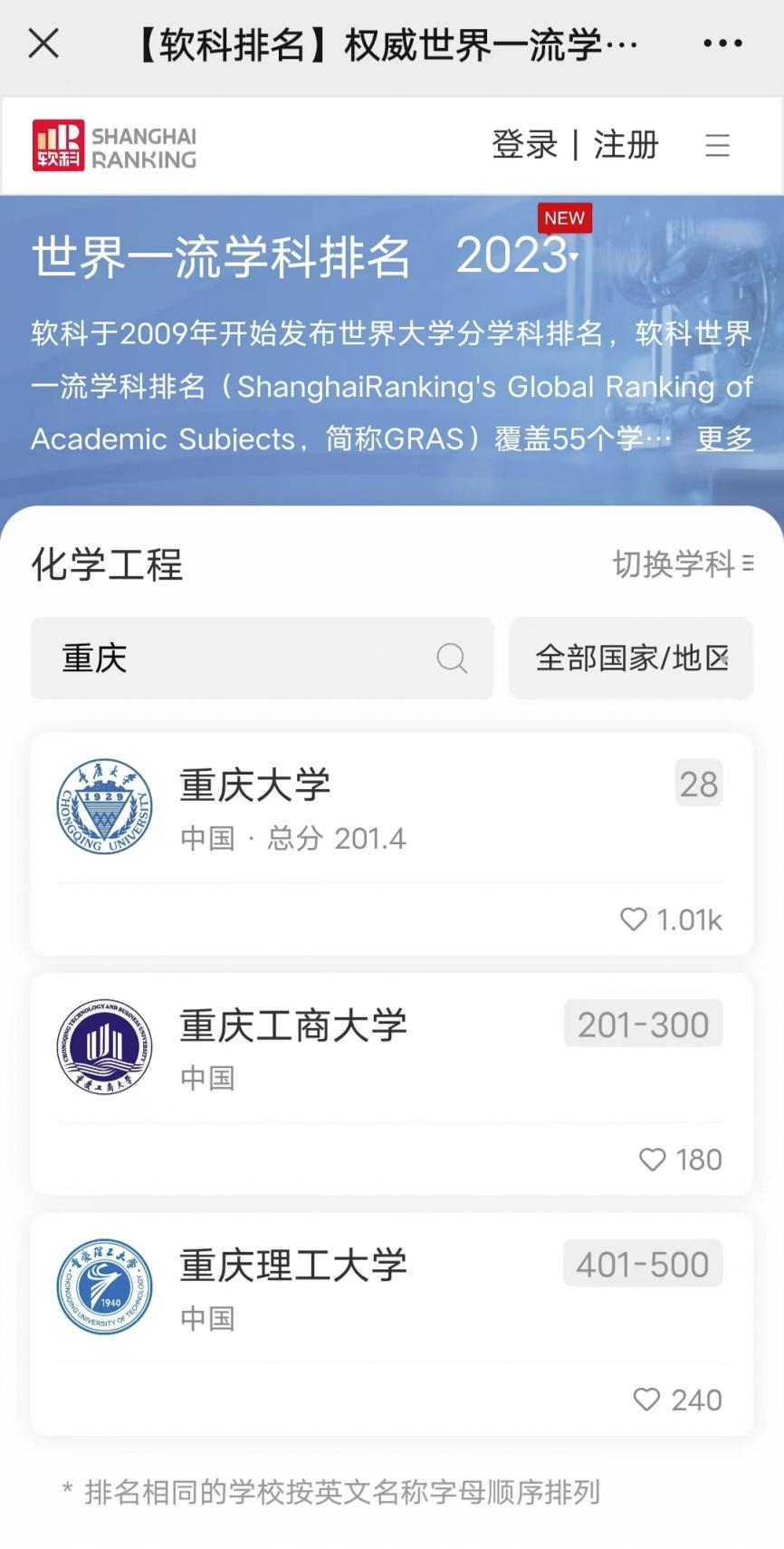 10月27日,高等教育评价专业机构软科正式发布2023“软科世界一流学科排名”。beat365共有3个学科上榜。其中,化学工程学科进入世界一流学科排名前300,工商管理学学科进入世界一流学科排名前400,电子科学与技术学科进入世界一流学科排名前500。