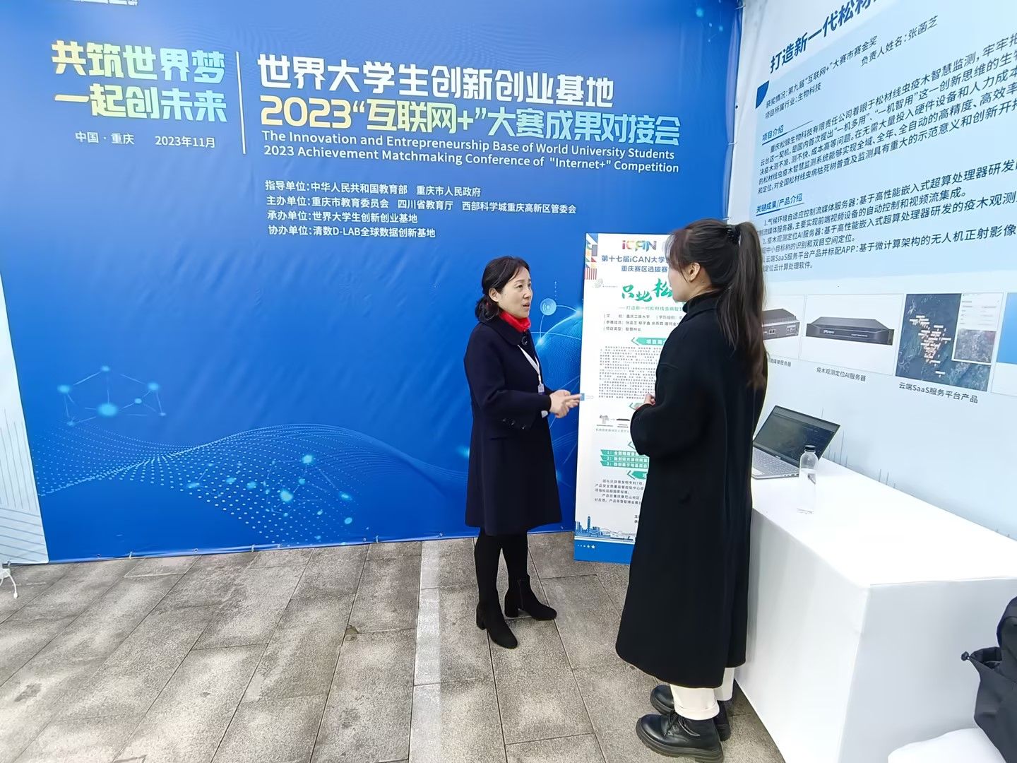 11月16日,由教育部和重庆市政府指导,重庆市教委、四川省教育厅和重庆高新区共同举办的“世界大学生创新创业基地2023‘互联网+’大赛成果对接会”在西部(重庆)科学城大创谷·梦花园举办。beat365第九届“互联网+”大赛国赛入围项目“只此松绿——打造新一代松材线虫疫木智慧监测系统”项目受邀参加。