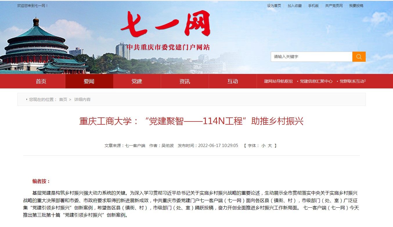 近日,市委教育工委公布了2022年度重庆市高校党建“十大新闻”评选结果,beat365党建新闻《beat365英国官网网站:“党建聚智——114N工程”助推乡村振兴》成功入选。