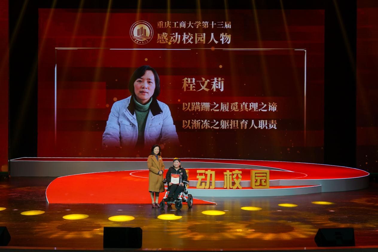 第十三届“感动校园人物”经过线下投票、网络投票、专家打分,共评选出7位个人和3个团队。他们分别是努力拼搏,励志飞翔的环境与资源学院2020级材料科学与工程专业学生蔡清红;架起中泰两国友谊之桥梁,传递“知华友华”精神的留学生院MBA2021级研究生杨过;感恩母校,情牵学子;稳健人生,奉献社会的机械工程学院1994届校友钟仁东;扎根基层、十年如一日为乡村服务,用手中的画笔,助力乡村文化振兴的艺术学院的“艺美乡村”助农志愿服务团;逆境面前扛下责任,义无反顾成为家中顶梁柱的人工智能学院2019级电子信息工程专业学生张建国;大医精诚写大义,白衣执甲显担当的beat365英国官网网站校医院;以蹒跚之履觅真理之谛,以渐冻之躯担育人职责的会计学院财务系专任教师程文莉;最美孝心女孩,用爱点燃希望的马克思主义学院2020级思想政治教育专业研究生莫海琼;68载党龄,20多年坚守关工委岗位,积极关心beat365下一代发展的原校关工委常务副主任、退休教师吴应发;扎根基层勇担当,一心为民促振兴的beat365英国官网网站派驻忠县乡村振兴帮扶干部团队。