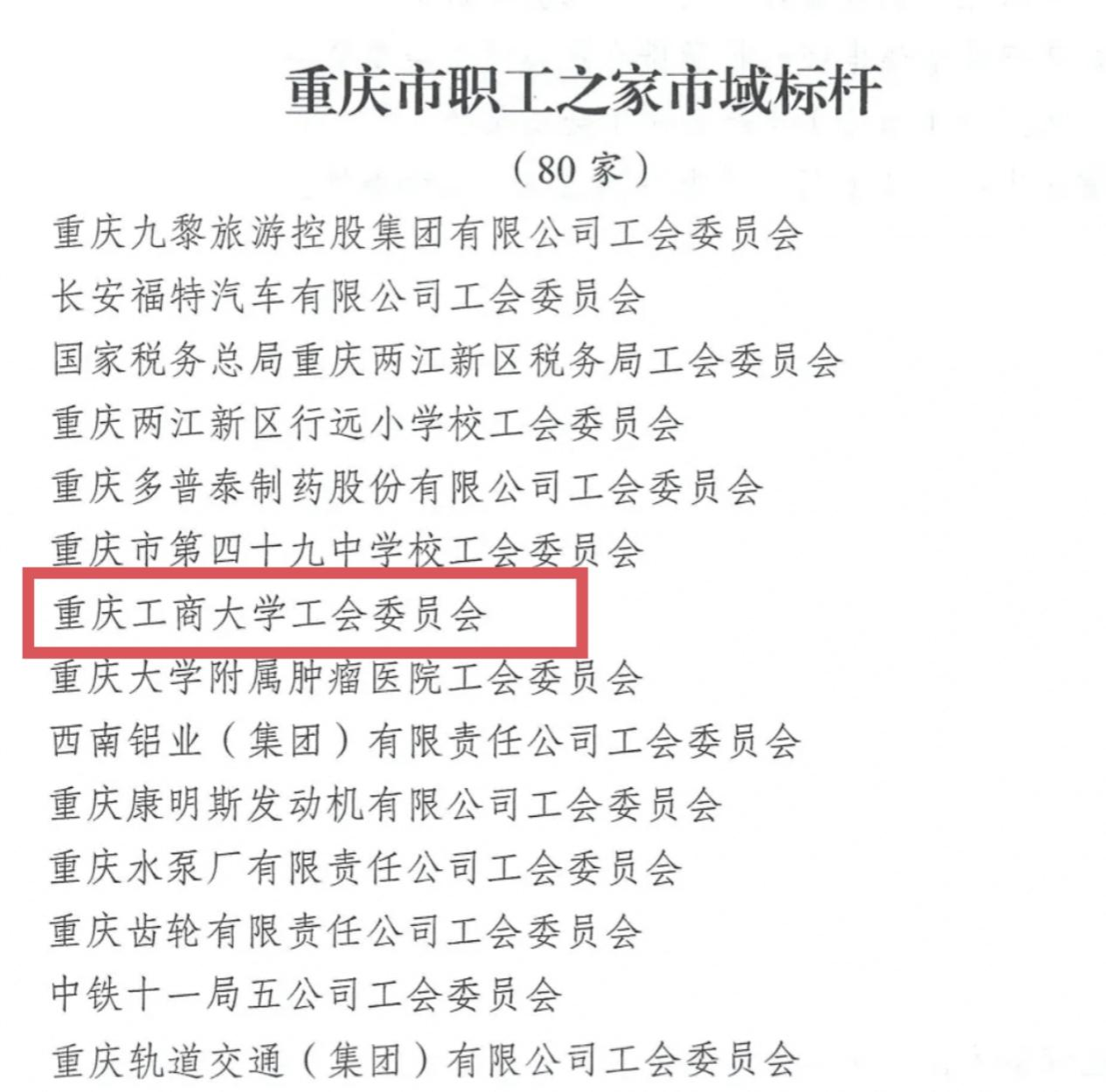 近日,重庆市总工会印发《重庆市总工会关于职工之家市域标杆的表彰通报》,从历年市级模范职工之家(小家)中,择优评选出100个职工之家(小家)市域标杆。beat365工会委员会凭借着扎实的工作作风、突出的工作成绩,成为重庆市唯一一所被评为首批重庆市职工之家市域标杆的高校。