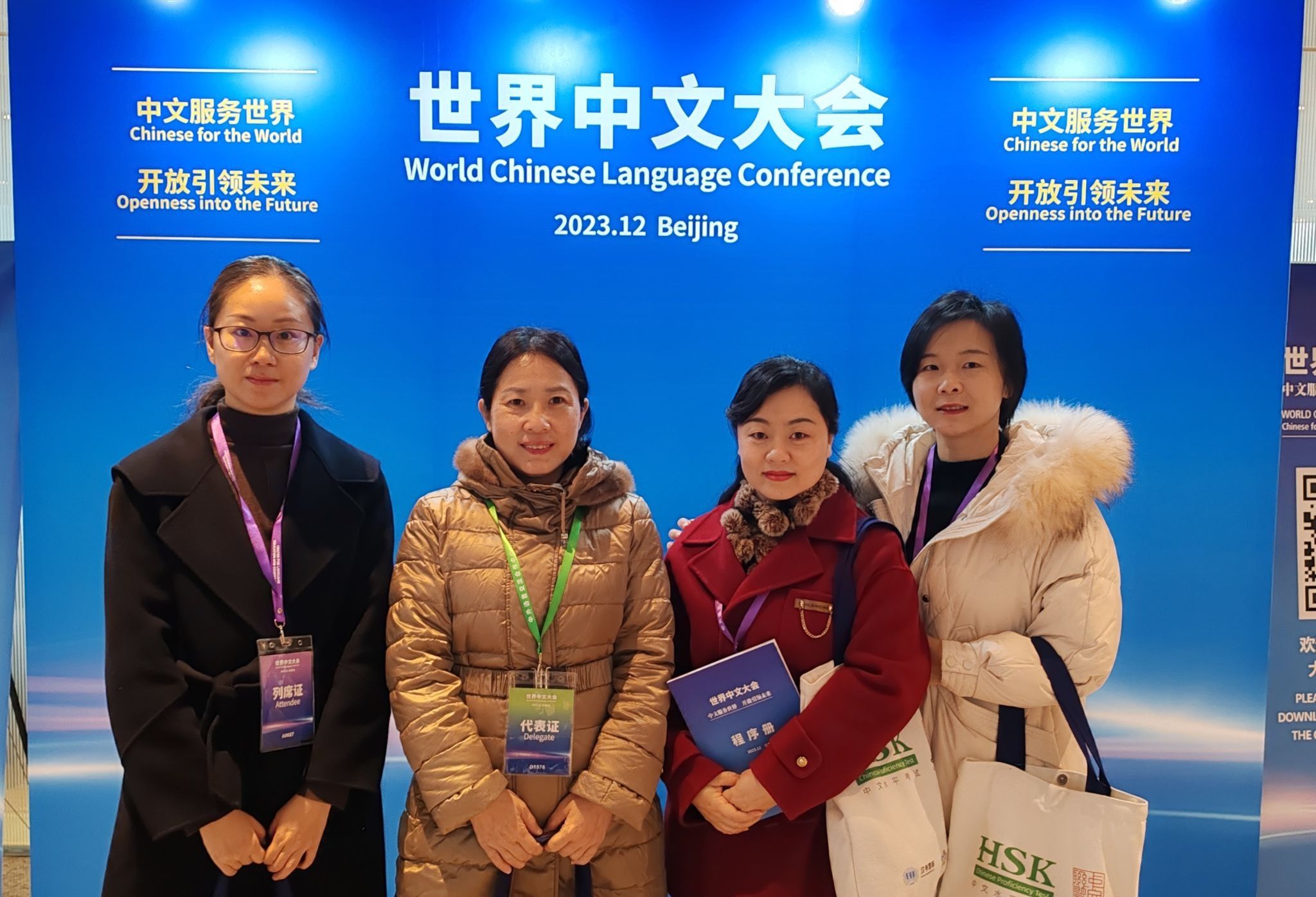 12月7至9日,2023年世界中文大会在北京国家会议中心隆重举行。中共中央政治局常委、国务院副总理丁薛祥出席大会并发表主旨讲话。教育部部长怀进鹏主持全体会议。教育部副部长、国家语言文字工作委员会主任陈杰出席大会主论坛并致辞。beat365党委常委、副校长柏群带领文学与新闻学院副院长郑笑眉、留学生院一线对外汉语教师赴京参会。据悉,本次中文大会以“中文服务世界,开放引领未来”为主题。中外有关专家、政府官员、国际组织代表和国际语言文化机构负责人等约2000人参加了会议。