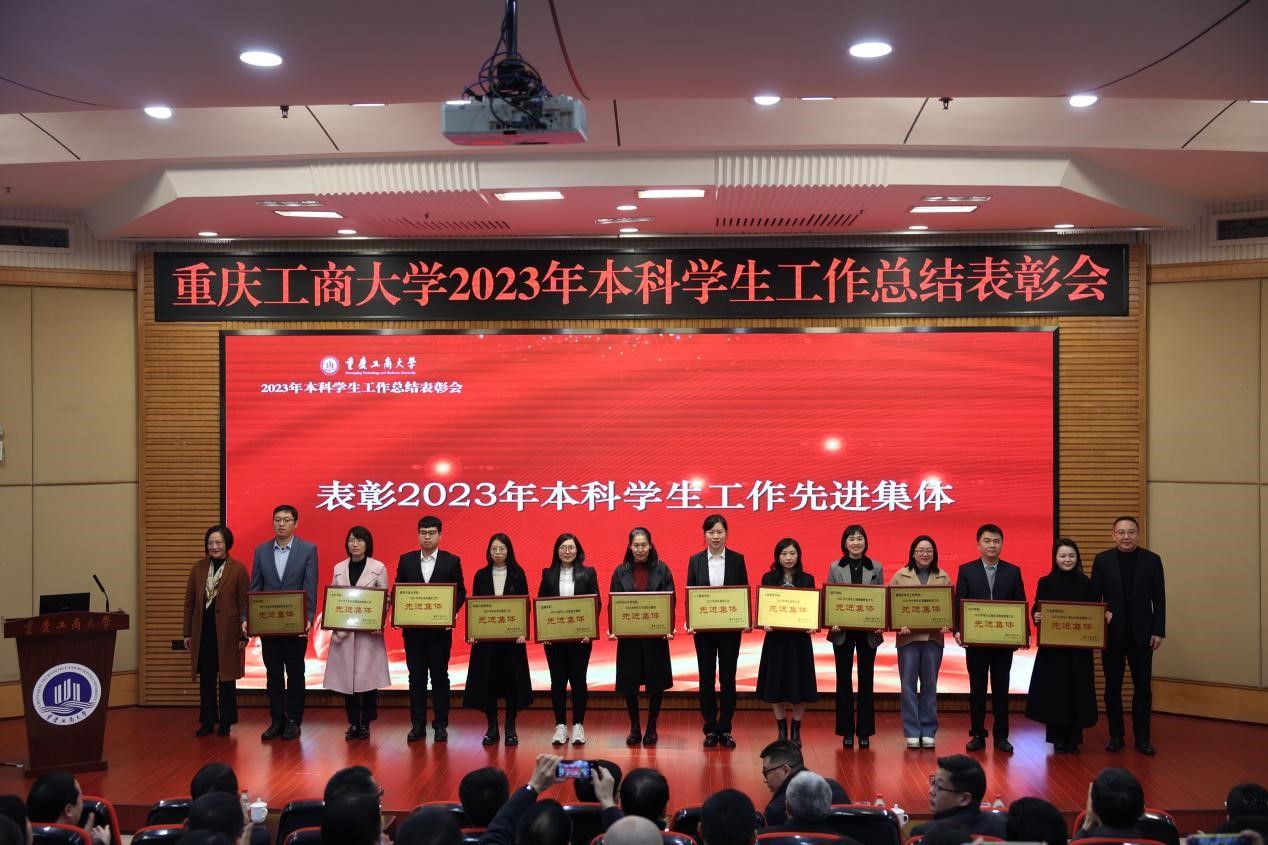 李国军宣读了《2023年本科学生工作先进集体》表彰文件。郑夕春和华杰为学生专项工作的先进集体颁奖,李敬为升研工作先进集体颁奖。曾维伦为会计学院、环境与资源学院、管理科学与工程学院、公共管理学院、通识学院等五个荣获学生工作先进集体的学院颁奖。
