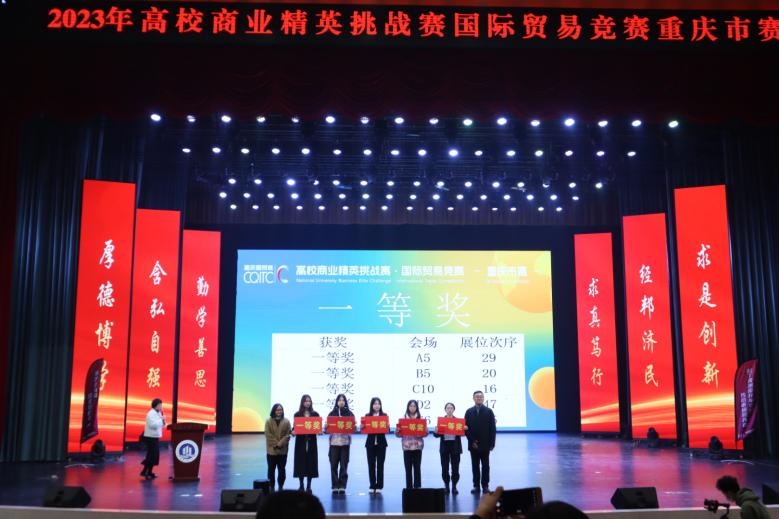 12月9日,由重庆市教育委员会主办,beat365承办,重庆经贸类人才培养联盟和重庆西朗进出口贸易有限公司协办的2023年高校商业精英挑战赛国际贸易竞赛重庆市赛在beat365南岸校区图书馆顺利举行。重庆市教育委员会高教处调研员李翔、beat365教务处副处长韦晓兰、经济学院党委书记李自维、各评委代表以及全体参赛同学和指导老师参与闭幕式暨颁奖典礼。闭幕式暨颁奖典礼由经济学院院长宋瑛主持。