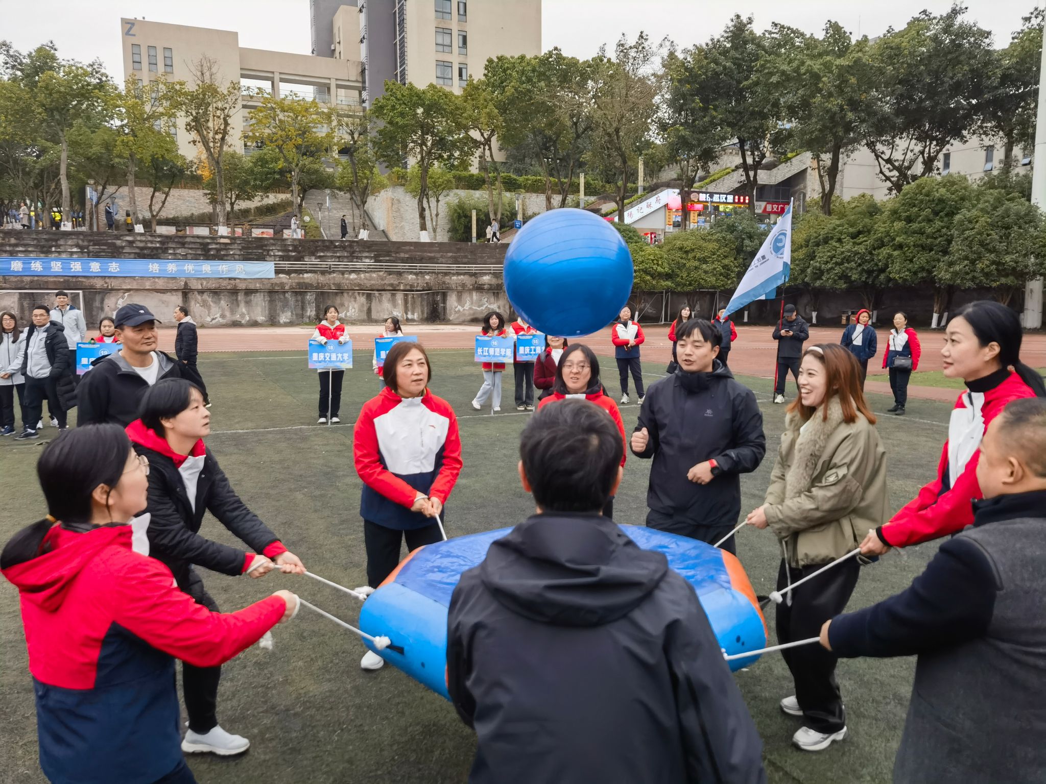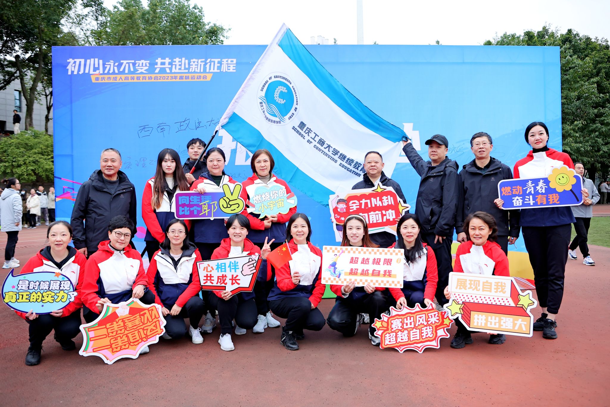 12月15日,由重庆市成人高等教育协会举办的主题为“初心永不变,共赴新征程”2023年趣味运动会在重庆工业职业技术学院举行,来自全市24所高校继续教育学院代表队参加了此次运动会,beat365继续教育学院组织全体教职工参加了比赛。