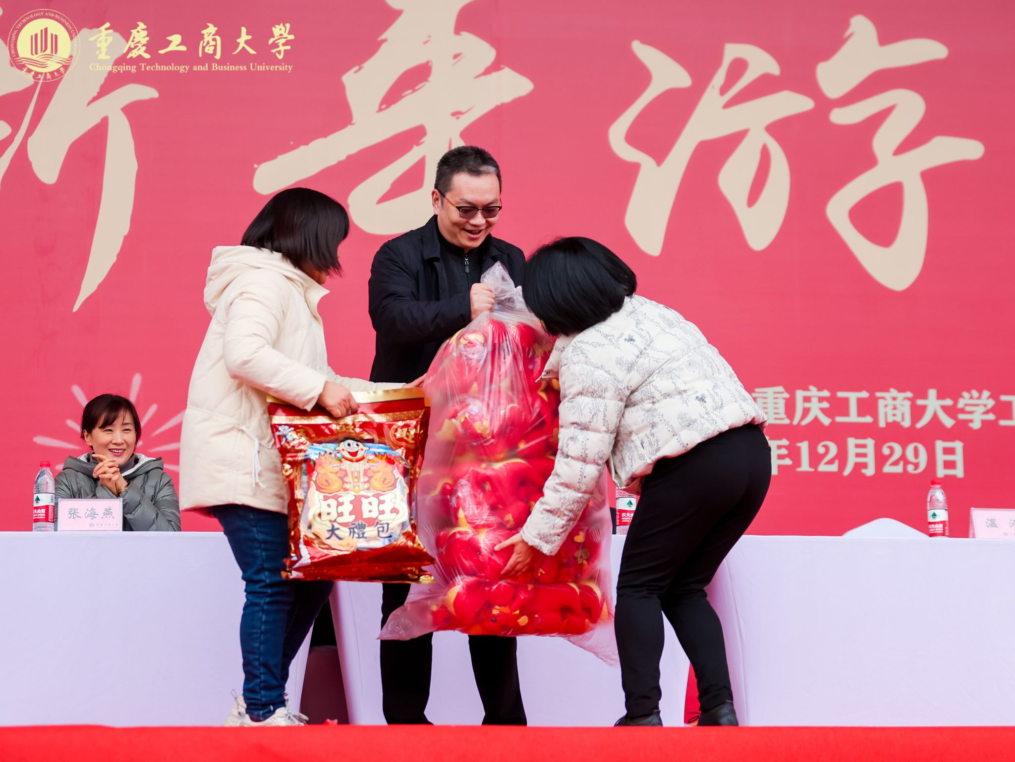 在赛前抽奖环节中,党委常委、副校长陈运超、张波、李国军、李敬,党委常委、纪委书记、监察专员张海燕分别为参与活动的教职工个人抽奖,党委副书记宋豫为集体抽奖,校长温涛为特别奖抽奖。共计30位教职工获得个人幸运奖,数学与统计学院工会、艺术学院工会、图书馆工会获得集体幸运奖,现代国际设计艺术学院工会获得特别奖。