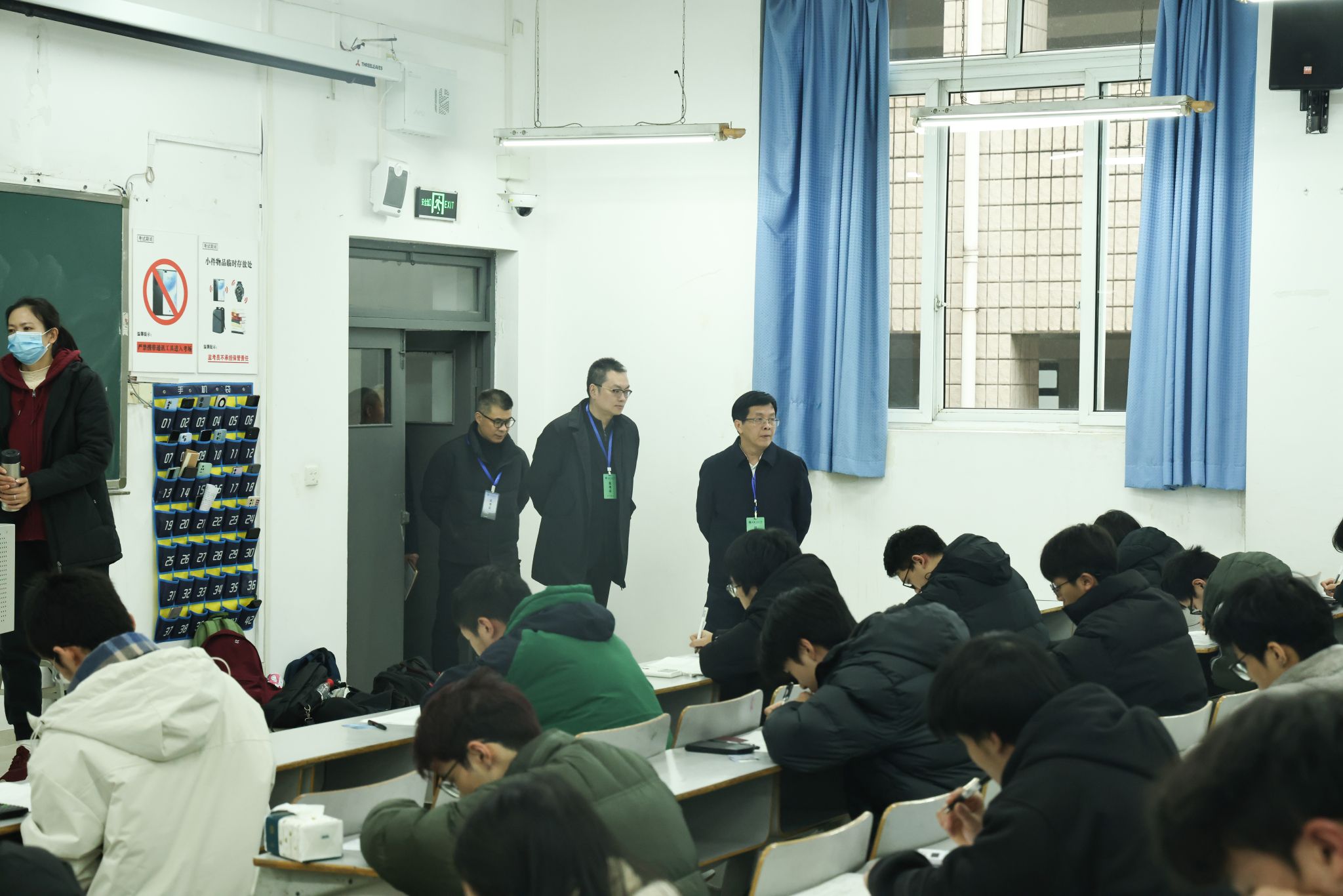 巡考过程中,曾维伦、温涛带队对考场设置、考试秩序、监考人员到位、学生考风考纪等情况进行了全面检查,并与考务人员进行沟通,详细了解考试具体情况,督促监考老师尽职履责,严肃考风考纪,树立风清气正的考试氛围,为学生营造公平的考试环境。