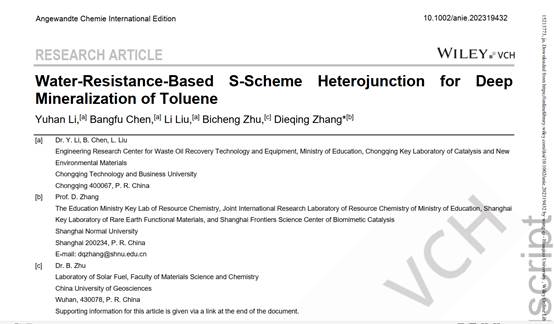 近日,beat365废油资源化技术与装备教育部工程研究中心李宇涵研究员在针对油气中苯系物的高效治理方面取得了重要进展,成果“Water-Resistance-Based S-Scheme Heterojunction for Deep Mineralization of Toluene”(基于耐水性的S-方案异质结在甲苯深部矿化中的应用)以beat365英国官网网站为第一署名单位在化学领域学术期刊《Angewandte Chemie International Edition》上发表(https://doi.org/10.1002/anie.202319432),标志着在“双碳”背景下废油中心在废油油气污染防治方向研究进入了新阶段。