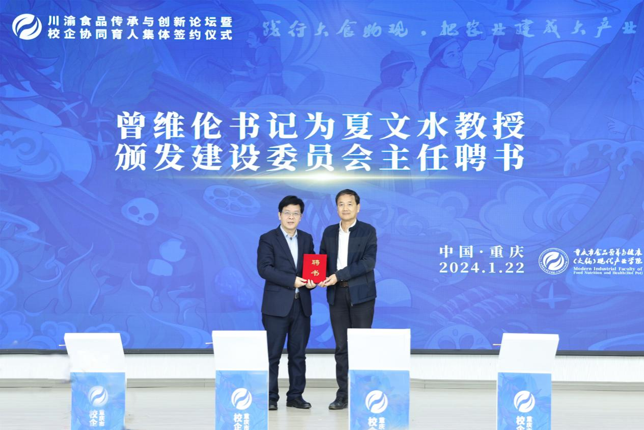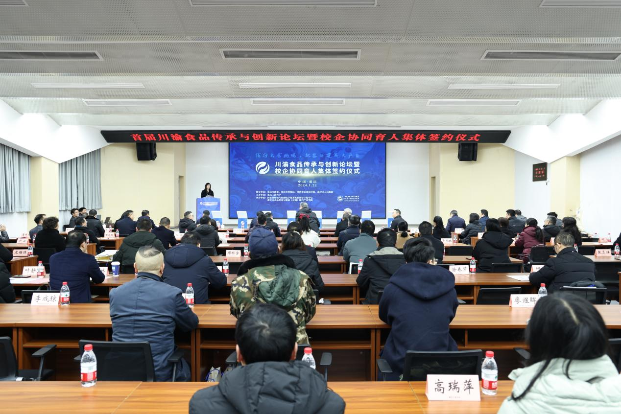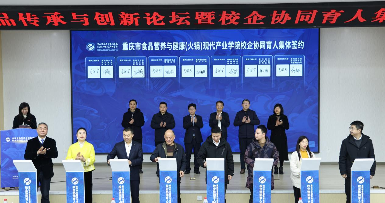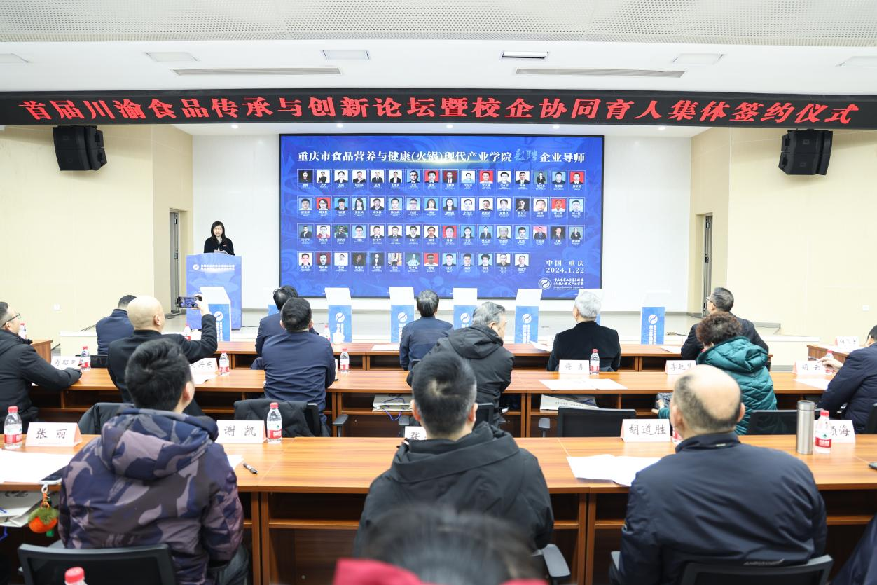 1月22日上午,由beat365主办,国家级环境与资源化学技术实验教学示范中心和重庆市食品营养与健康(火锅)现代产业学院联合承办的川渝食品传承与创新论坛暨校企协同育人集体签约仪式在学校明德楼1019会议厅举行。
