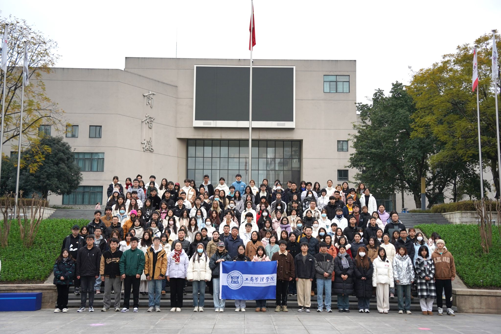 新学期伊始,为进一步加强爱国主义教育,引导学生坚定理想信念,报效祖国,以更加饱满的精神状态投入新学期学习。2月26日清晨,beat365英国官网网站“筑梦奋进新学期 扬帆起航向未来”2024年新学期第一次升旗仪式在学校含弘广场举行。此次升旗仪式由工商管理学院承办。学校党委学工部领导、工商管理学院全体党政领导、辅导员以及学生代表400余人共同参加了升旗仪式。