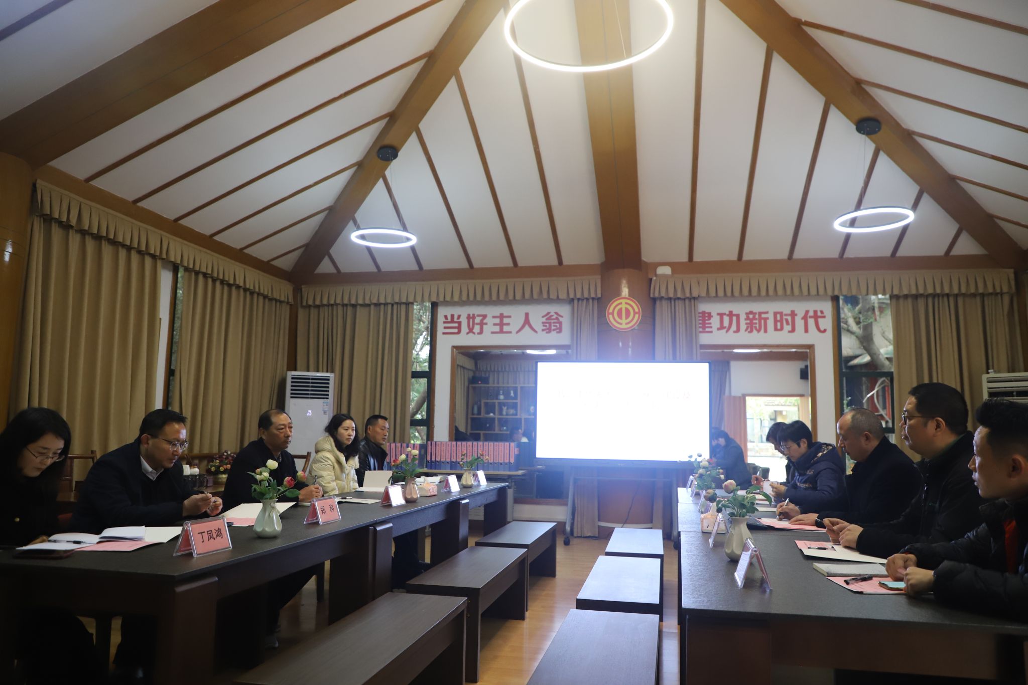 魏寿阳一行首先考察了怡园基地以及教代会成果展。随后在吟风阁展开座谈,在座谈会上,魏寿阳一行重点调研了beat365教代会代表比例设置、选举情况、委员和专委会组成情况、代表履职以及提案办理情况等,并查阅了相关材料。他们对beat365教代会制度建设、规范运行、代表履职情况、档案材料管理给予了高度评价,认为beat365教代会制度完善,程序规范,执行标准,运行科学,示范作用明显,同时也对“两代会”分别召开和宣传工作等提出了宝贵的意见和建议。