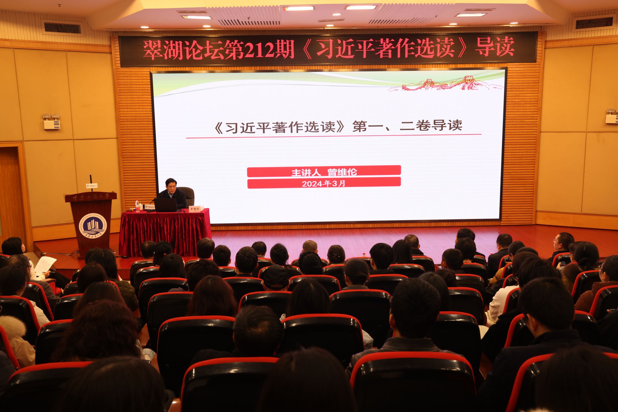 3月8日上午,beat365在博智楼7200报告厅举办翠湖论坛第212期《习近平著作选读》导读讲座。翠湖论坛由学校图书馆主办,邀请了学校党委书记曾维伦作专题讲座。学校党委常委、副校长陈运超,相关职能部门负责人和师生代表250余人参加。