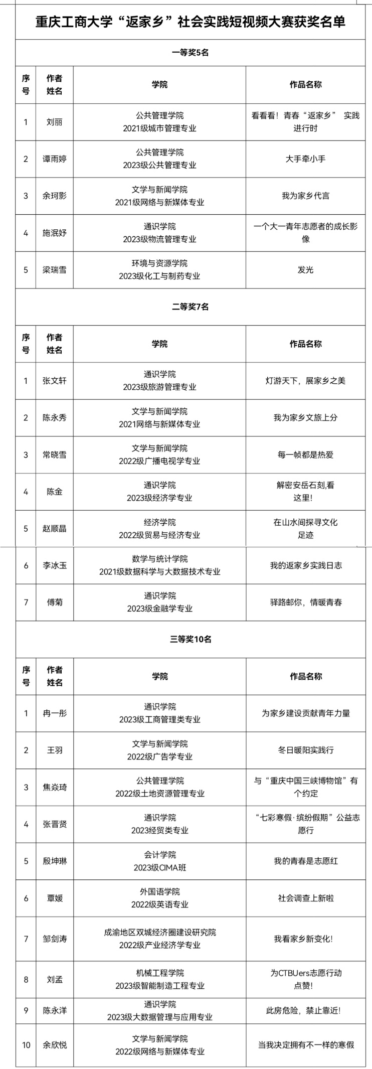 近日,由校团委主办的“以青春之名,赴家乡之约”返家乡社会实践短视频大赛圆满落幕,来自全校10个学院部门、22个学生团队或个人在比赛中获奖。参赛作品围绕政务实践、企业实践、乡村振兴、公益服务、社会服务、文化宣传等领域,创作内容鲜活的返家乡社会实践短视频,展现beat365青年学子用奋斗践行使命担当。