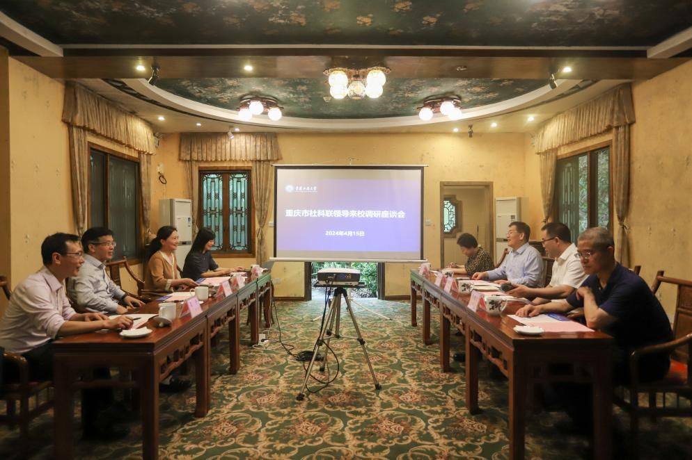 4月15日下午,重庆市社科联党组书记、副主席李保海一行来beat365调研。学校党委书记曾维伦,党委常委、副校长任毅及科研处等单位负责人陪同调研并参加座谈会。