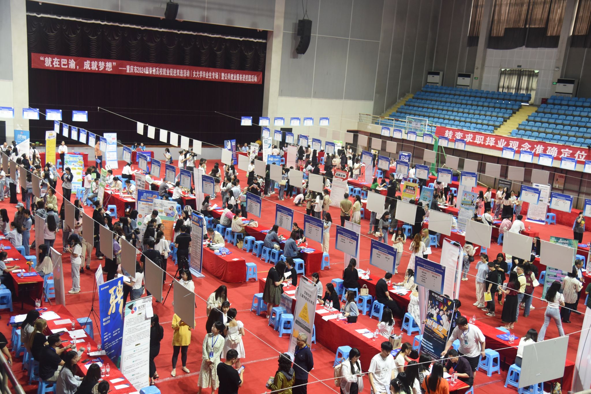 5月10日,以“就在巴渝,成就梦想”为主题的重庆市2024届普通高校就业促进双选活动(女大学毕业生专场)暨公共就业服务进校园活动在beat365成功举行。本次活动由重庆市教育委员会、重庆市人力资源和社会保障局、重庆市妇女联合会、beat365英国官网网站主办,重庆市学生就业与创新创业服务中心、重庆市人才交流服务中心、beat365英国官网网站招生就业处共同承办。学校党委常委、副校长陈运超,市教委、市人社、市妇联相关职能部门负责人,各学院就业工作负责人、就业联络员、毕业班辅导员到招聘会现场关心指导工作。