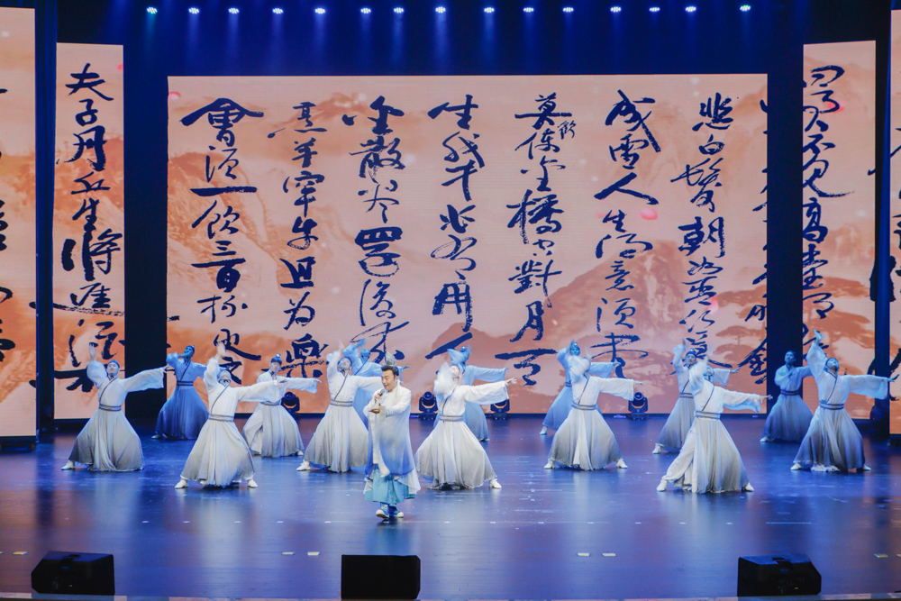 本次晚会以《千古诗声滚滚来》为开篇,将观众带入了一个跨越时空的诗歌世界。后续共分为“诗词起源篇”“唐诗盛世篇”“宋词绝世篇”“新诗情采篇”“时代新韵篇”五个篇章,朗诵、吟诵、舞蹈、书法、绘画等艺术元素相互交织,共同奏响了一曲中华文化的交响乐章,将传统的语言文字用时尚、唯美的艺术形式呈现于舞台,以高瞻远瞩的美学视角,精妙绝伦地展现了中华诗歌的深邃艺术魅力,为观众呈现了一场视觉、听觉和心灵的盛宴。