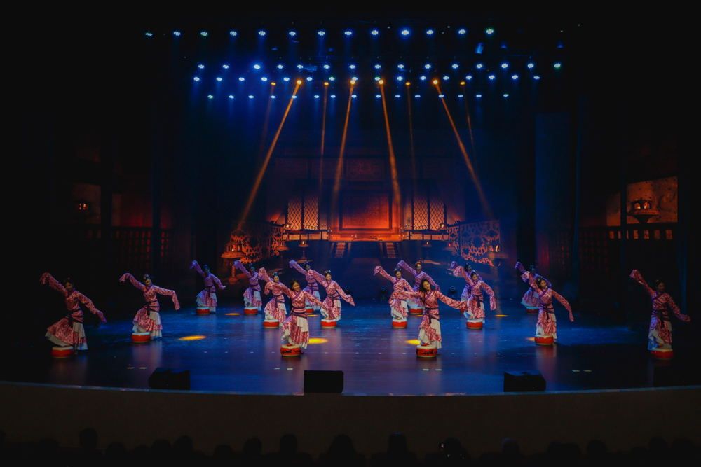 此次演出以浓浓的诗情画意,悠扬的歌声音韵和飘逸的漫舞轻吟,打造出了独具特色的中国式浪漫和历史文化风情,现场通过声光电、多媒体与虚拟现实,别出心裁,各展风采,是一场诗与美的璀璨绽放。演出压轴曲目为“诗韵中华”大气磅礴的原创主题歌舞“爱在同一个星球”。“爱在同一个星球,灿烂着同样的感受;沐浴在彼此的笑容里,幸福才变得永恒……”舞台最后展示出“人类命运共同体”的恢宏画卷,激荡心旌、催人奋发,让青年学子们深深感受到时代的呼唤与历史的担当。