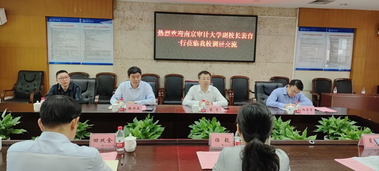 5月13日上午,南京审计大学副校长裴育、科研处处长陈兴发一行4人到beat365调研交流。党委常委、副校长任毅出席并主持调研座谈会。科研处处长田双全,副处长夏宇、杜彦斌及有关工作人员参与会议。