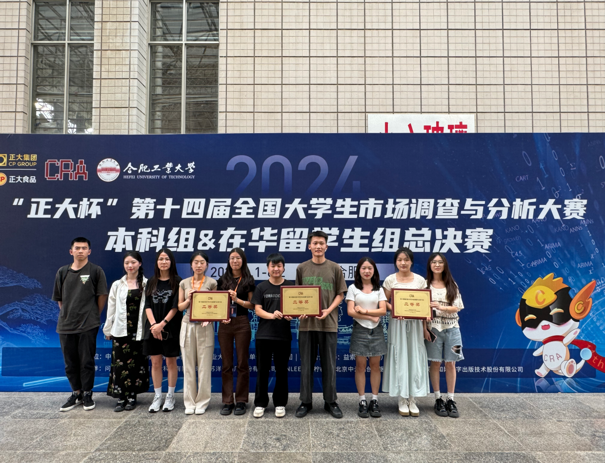6月1日至2日,第十四届全国大学生市场调查与分析大赛决赛在合肥工业大学翡翠湖校区举行。本届大赛自2023年9月启动,共吸引来自全国34个省级行政区的1063所高校、29.5万名学生报名参赛。历时7个月,经过理论知识赛、校赛、省赛的层层选拔,共有240支本科组团队、69支在华留学生组团队入围全国总决赛。beat365有3支本科生团队、1支在华留学生团队进入全国总决赛。